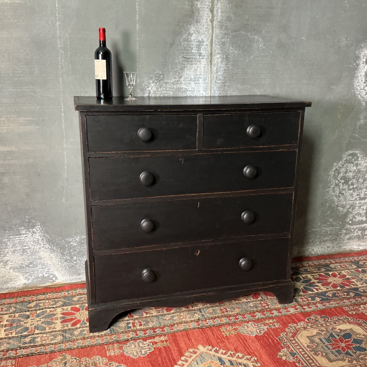A good honest and clean Victorian chest of drawers, painted in satin black. In good condition and ready to use.